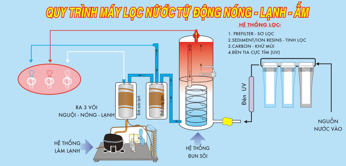 Sơ đồ quy trình máy lọc nước tự động nóng - lạnh - ấm